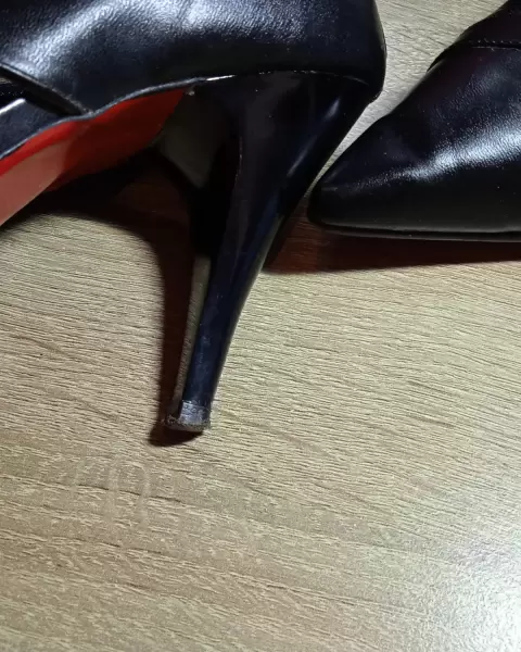 Zapatillas color negro Con pequeñas aberturas por delante cierre en talón y suela roja tacón del 7 excelente modelo muy coquetos Zapatillas color crudo o perla tacon del 5 ancho con correa excelente condiciones