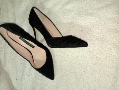 French connection. Con estoperol dolor negro, descarapelamiento dentro de lado del dedo pequeño por la humedad en buenas condiciones de gamuza