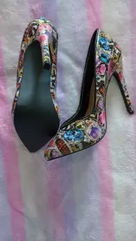Hermosas zapatillas. Hermosas zapatillas y con estampado juvenil, magníficas.para usar en cualquier ocasión, tacón alto