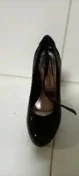 Hermosas zapatillas negras. Lindas zapatillas negras de charol , tacón de terciopelo en número 41/2 ,cómodas y elegantes.