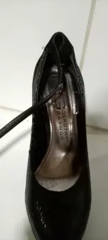 Lindas zapatillas negras de charol , tacón de terciopelo en número 41/2 ,cómodas y elegantes.