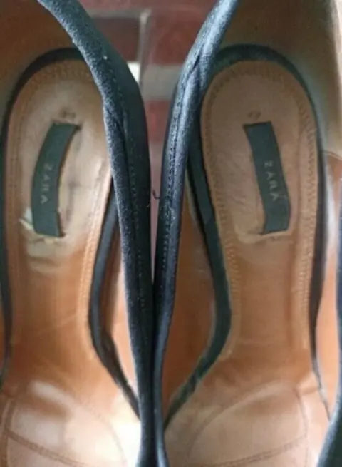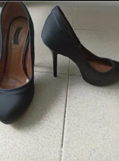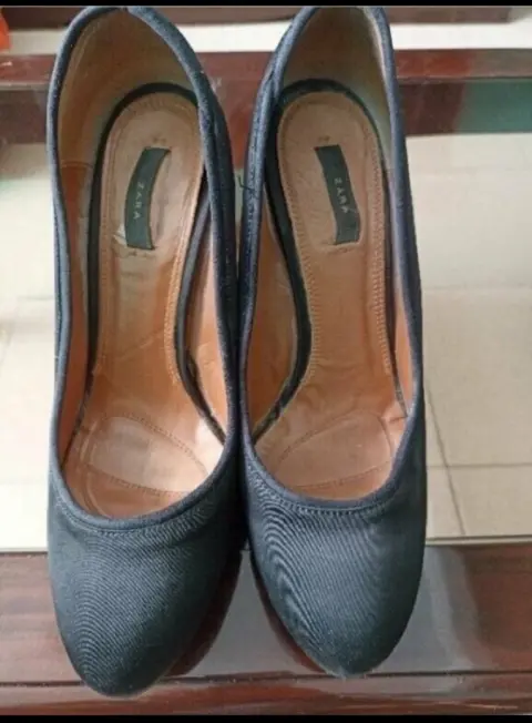 Linda zapatillas ZARA forradas en tela, súper padres, zapatos que nunca deben faltar en tu outfit para vestir formal o de fiesta. No tienen ningun detalle, por dentro es piel, son súper cómodas.Tacon 10 cm.