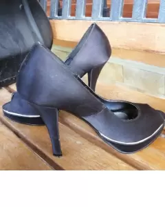 Lindas zapatillas negras. Lindas zapatillas negras abiertas de adelante super coquetas y Combinables, num 3 puestas una vez