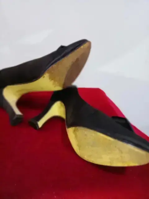 Lindos zapatos de satin negro. Se encuentran en buenas condiciones, de satin ideales para toda ocasión, elegantes zuela de piel tamaño del tacón 8.5