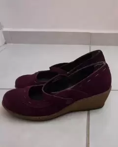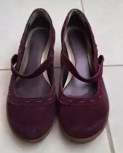 Morados. Los use como maximo 5 veces cuando me quedaban 😅 son de gamuza, tienen poco tacon es de goma asi que ni ta cansas al igual que ni te resbalaras.