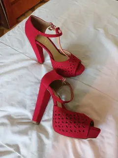 Gamusina roja, altura de tacón 12 con plataforma, número 6, nuevas nunca se usaron ! Precioso y elegante diseño!