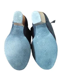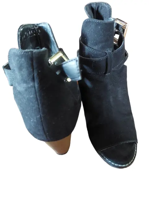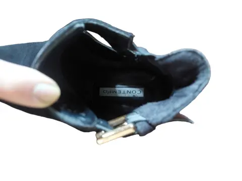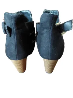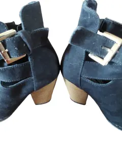 Peep toe negro número 24, marca Contempo, color negro, gamuza, cierre con hebilla funcional (a considerar no cuenta con cinta donde se mete correa después de introducir en hebilla, se observa en la foto), tacón alto. Realmente escaso uso. Cualquier duda con gusto contesto.* En la compra de 2 o más prendas debajo de 200 pesos (o de esta prenda) mejoro precio.