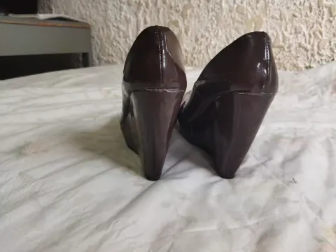 Plataforma muy comodo. Talla 23Plataforma 13 cm.Tacto piel caféEstá en buenas condiciones solo se uso una vez .