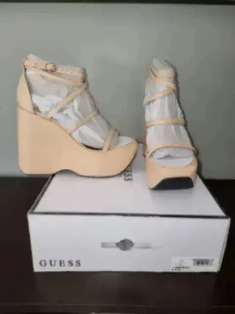 Plataformas beige claro guess. 13 cm. De alto, aunque son altas, son super cómodas y además no pesan nada. Son originales como se muestra en la imagen, las puedes encontrar en liverpool por $3,600, yo las vendo en super remate!!! Las entrego con su caja original