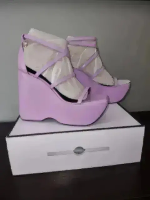 Plataformas lila guess. 13 cm. De alto, aunque son altas, son súper cómodas y no pensan nada!!!! Son oroginales, como se muestra en las imagenes, se pueden encontrar en liverpool por $3,600. Yo las vendo en liquidación y las entrego con su caja