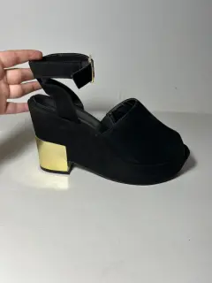 Plataformas negras con detalle doradoMarca: WESTIES23MXCondición: usados, tienen unos ligeritos detalles en la parte dorada que no se notan a simple vista