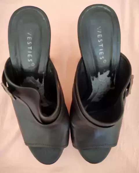 Hermosos tacones Westies, usados una sola vez, estaban en caja pero la humedad los dañó.