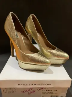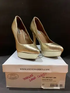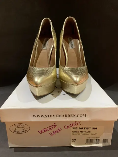 Pumps Steve Madden 4 dorados !!!. Hermosos pumps con plataforma dorados con textura de piel de vibora !!! ❤️