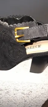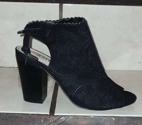 Hermosos zapatos color negro aterciopelado,tienen un bonito diseño, número 3️⃣ tacón 9️⃣, son usadas,tienen una puesta,están en perfectas condiciones.