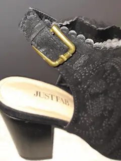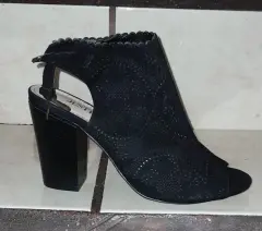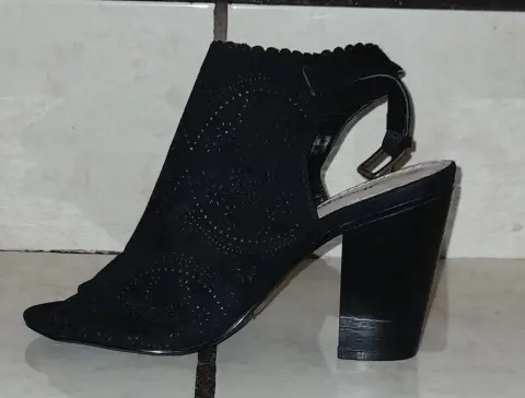 Sandalia zapatillas negras. Hermosos zapatos color negro aterciopelado,tienen un bonito diseño, número 3️⃣ tacón 9️⃣, son usadas,tienen una puesta,están en perfectas condiciones.