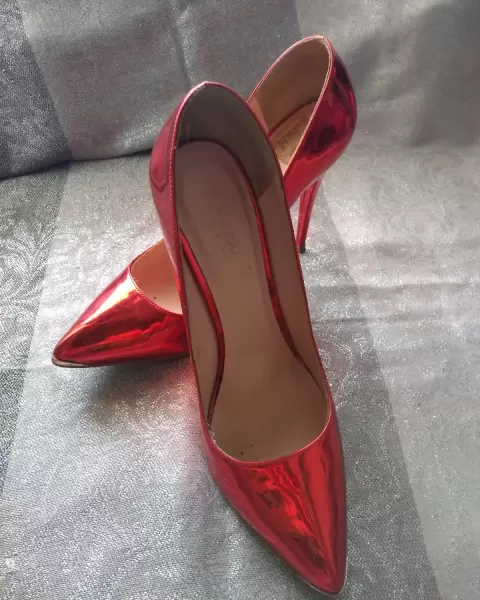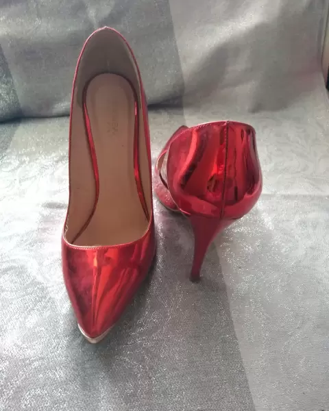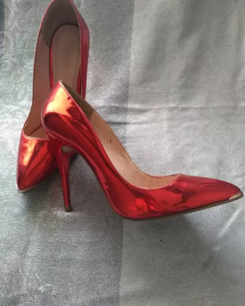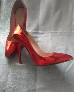 Stilettos rojo tipo espejo en excelentes condiciones solo de usaron una vez