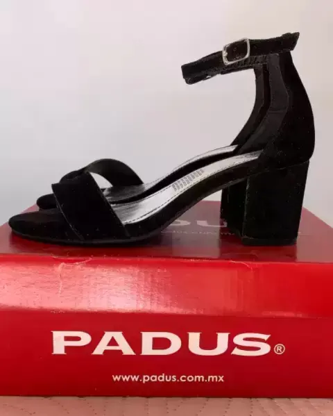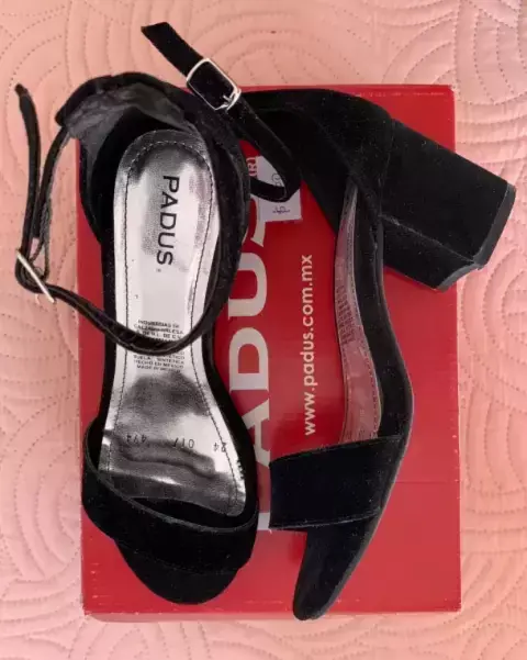 Tela de gamuzaModelo de modaSe usaron pocas vecesTacón ancho (5cms)Correa en el tobillo
