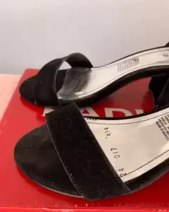 Tacón negro gamuza. Tela de gamuzaModelo de modaSe usaron pocas vecesTacón ancho (5cms)Correa en el tobillo