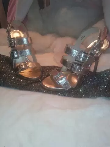 Tacon plateado con broches. Tacon con 4 broches,sin ningun detalle solo se usaron una sola vez,originales trae su caja,