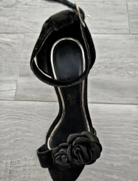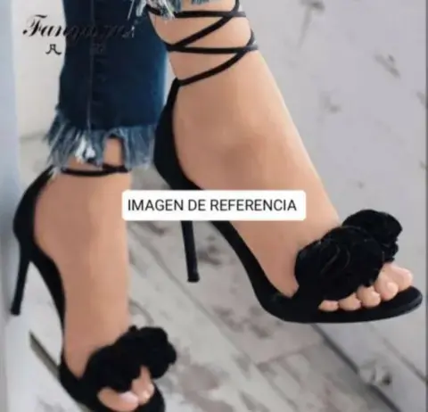 Tacones abiertos color negro. Tacones súper elegantes con rosas de tela 👠Talla #6-Puestos se ven súper bien-El tacón es súper delgadito yo calculo que de lo alto es un #8-Hacen que el pie se vea muy estilizado