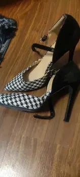 Zapatos de tacón, muy poco uso, parte trasera de gamuza, frente estampado pata de gallo, tacón 10 cm. Realzan cualquier outfit.