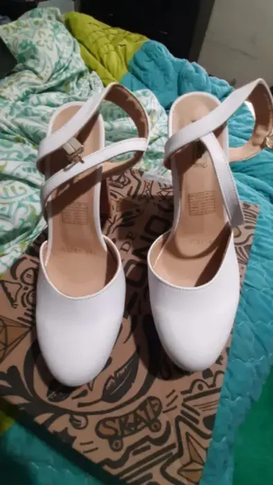Zapatillas con tacón ancho , blanco , sintéticos , el tacón mide 11cms , son del 5 y medio , completamente nuevosEn su caja