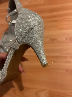 Tacones brillantes plata. Nunca los usé ,están nuevos y tienen brillosos ,son cómodos para salir o trabajar