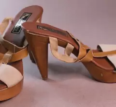 Zapatos cafés con beige de tiras cafés con elástico beige al frente con tacón tipo madera muy combinables. Talla 5. El detalle que tienen es que tiene rayado un poco el tacón