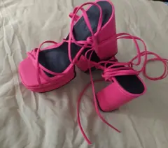 Tacones de plataforma. Bonitos tacones color rosa fuerte sin detalles talla 4