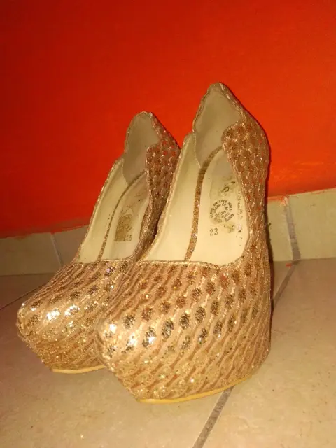 Bonitos tacones Dorados para una fiesta, se encuentran en bien estado, muy padres.