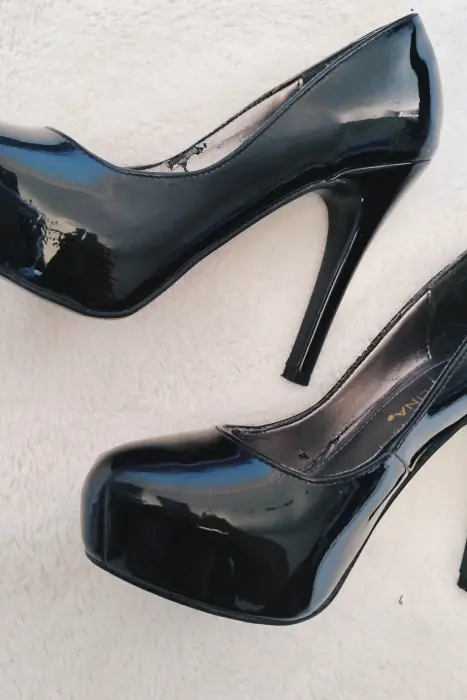 Tacones negros de charolNumero 22 y medioOJO: Tienen una puesta pero presentan un poco de desgaste en la parte interna del zapato, de adentro alguna partes del forro interno del tacón se desprenden.