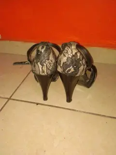 Tacones negros. Bonitos taco es negros con crema, de cinta, tacón de 10cm muy cómodos