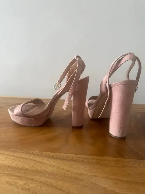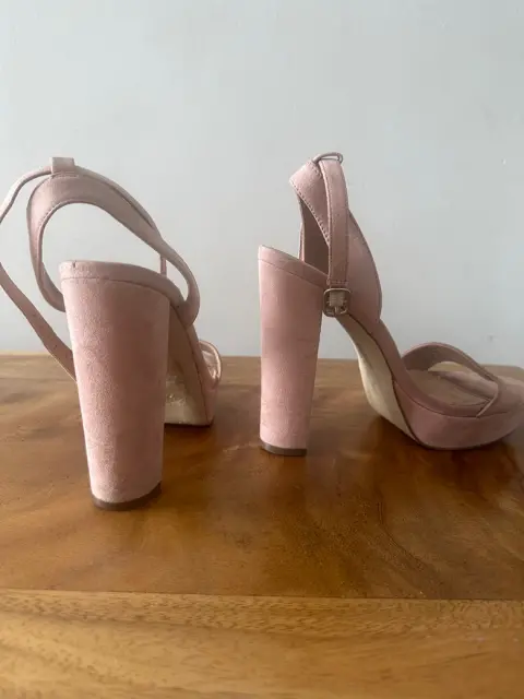 Tacones color palo de rosa, muy cómodos gracias a la plataforma