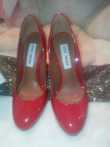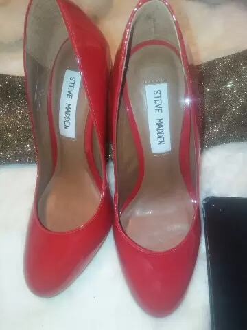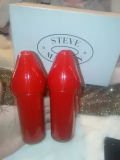 Tacones rojos originales. Marca steve madden,solo 3 puestas,sin ningun detalle,trae su caja,corte piel vacuno,tacon ancho, son originalea en exelente estado