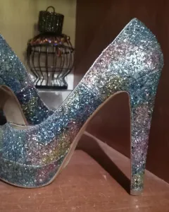 Tacones steve madden arco iris. Preciosos tacones!😍 Uso minimo Brillan súper bonito, tiene varios colores 💖 Son talla 5 pero diria que quedan mucho mejor a 4 o 4.5.