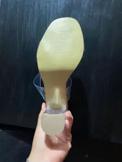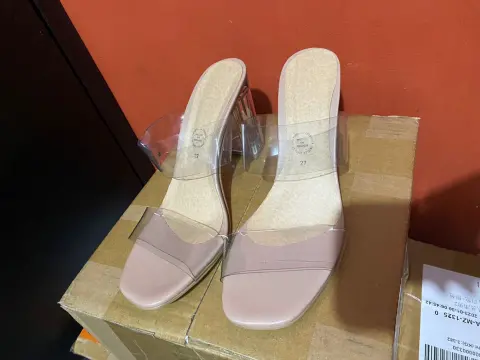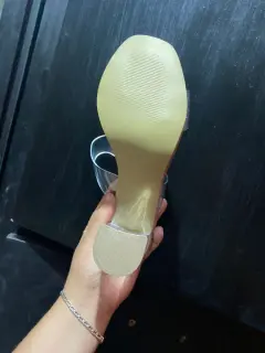 Hermosos tacones color Nude talla #7 Mexicano, cómodos, tira transparente y tacón simulando a ser de cristal, están súper bonitos 🥰😍, no desaproveches está oportunidad 🥰Completamente nuevos!Tacón #9 centímetros de altura no pesan y tiene tipo colchincito donde va el tobillo