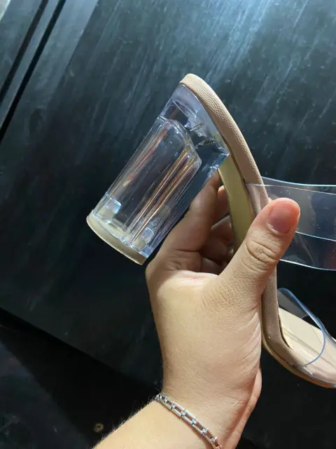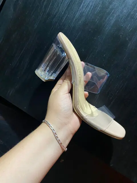 tacones tira transparente. Hermosos tacones color Nude talla #7 Mexicano, cómodos, tira transparente y tacón simulando a ser de cristal, están súper bonitos 🥰😍, no desaproveches está oportunidad 🥰Completamente nuevos!Tacón #9 centímetros de altura no pesan y tiene tipo colchincito donde va el tobillo