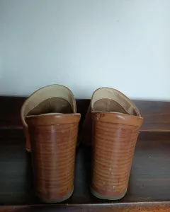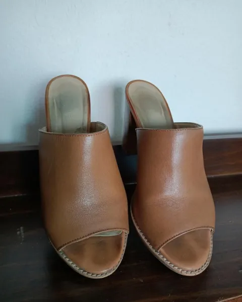 Tacones westies color miel. El tacon mide 8 cmEs tacon grueso,es comodo al camimarCubre gran pafte del pieEs material de piel sinteticaTalla 4 MX