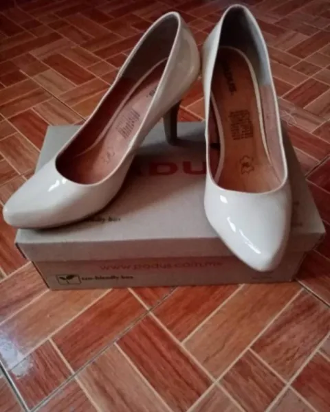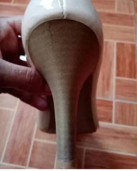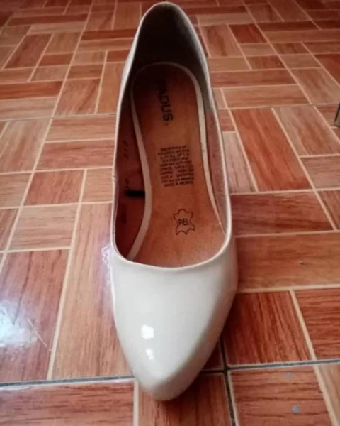 Zapatilla color avena talla 24, tacon del número 9, comodos, su forro interior es de piel, sin ningún detalle, puesto una vez.