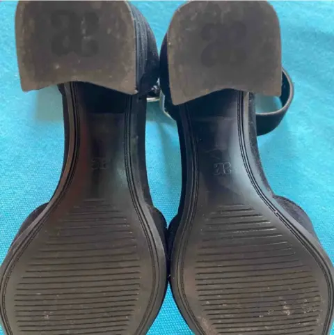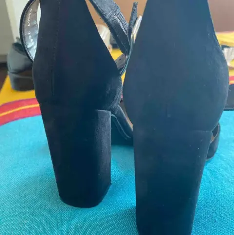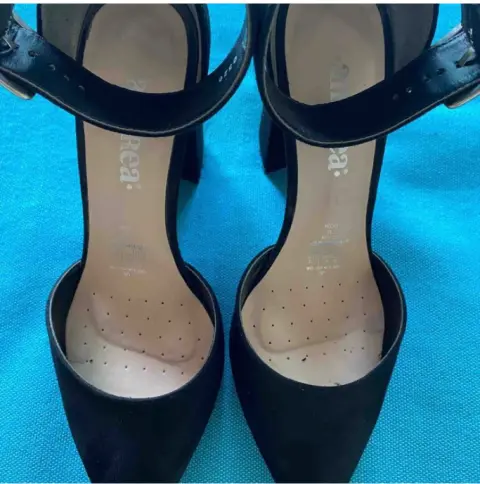 Zapatilla Andrea. Hermosas y muy cómodas zapatillas de gamuza de la marca Andrea, altura de tacones 10 cm, tacón ancho muy cómodo para caminar, con pulsera en el tobillo y linda hebilla que le da un gran toque