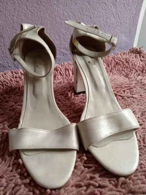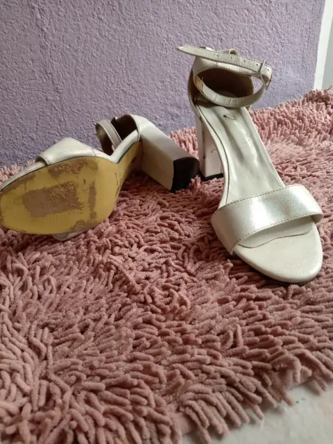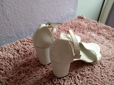 Zapatilla blanca. Tiene una altura de 8cm, con una hermilla que se ajusta, 3 puestas nada mas