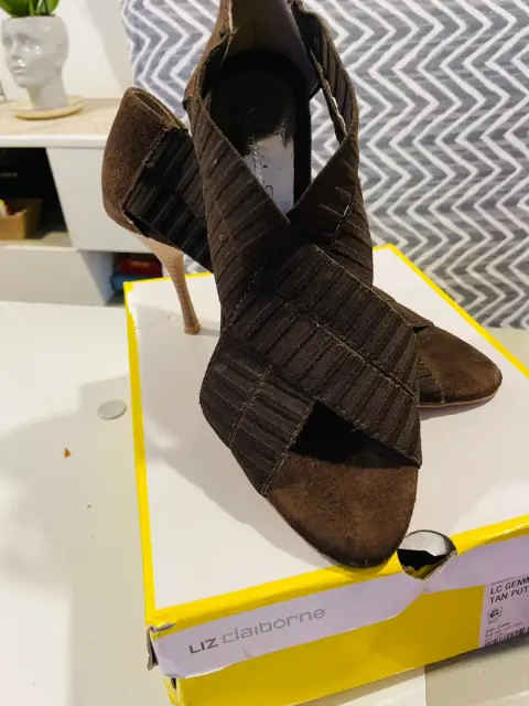 Zapatillas en excelente estado color café tipo gamuza se usaron una vez para un pantalón y por ser muy altos se guardaron en caja y no se usaron más
