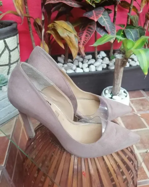Zapatillas con transparencia, de ante, muy buen estado tacon de 10 cms