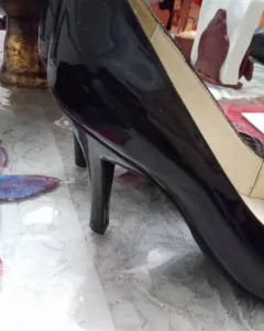 Zapatilla de charol negro de moda. Zapatilla de charol para fiesta.