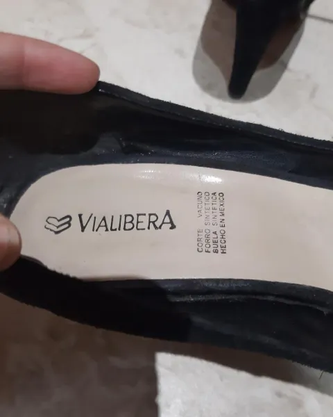Zapatillas de tipo gamuza con abertura en la parte de enfrente, corte vacuno con suela sintetica antiderrapante, tacon numero 10, con pequeño raspon en la gamuza de la parte del tacon.