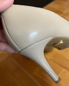 Zapatilla Nine West color nude.Puesto una vez, como nuevos, pequeño detalle en tacón derecho (se muestra en fotos) por estar guardados, no afecta su uso, poco visible.Talla 4.5 mx, tacón 8 cm