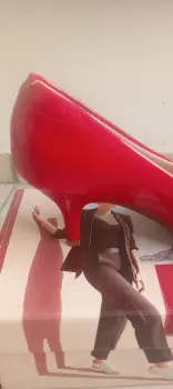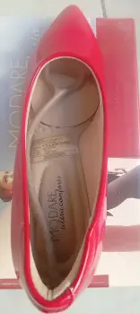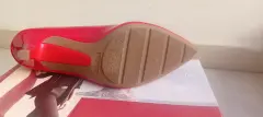 Cómodas zapatilla rojas tacón #6 número 5.5 con plantillas integradas para mayor comodidad.