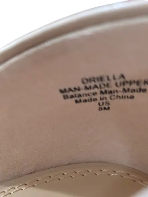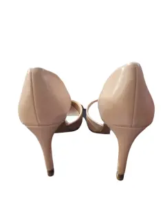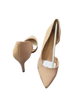 Zapatilla de Tacon Kelly and Katie, talla 25, color beige claro, modelo Driella, puntiaguda, Forro de piel sintética, Plantilla acolchada, Tacón alto cubierto de 8cm de alto, Suela sintética, nuevo en buen estado.
