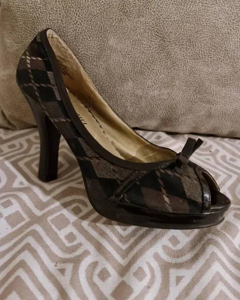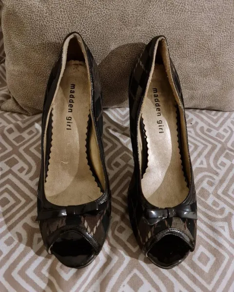 LINDA ZAPATILLA CAFE DE TELA EN ROMBOS!! COMBINABLE!! MADDEN GIRL!! TALLA: 4.5/ FORRO INTERNO COMPLETO NO DETALLE/ TELA Y CHAROL DE ZAPATILLA ENTERA SIN DETALLES/ UNICO DETALLE EN PUNTA IZQUIERDA LIGERO ACHATAMIENTO PERO NO LE AFECTARA A SU USO!!SUELA ENTERA !!! ALTO: 9.5cm