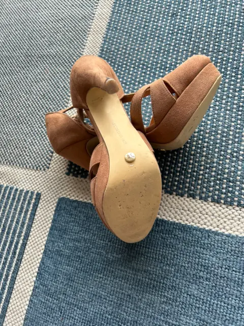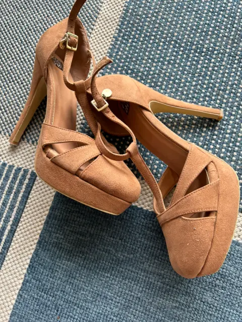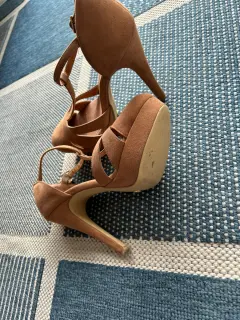 Zapatillas color carne gamuza, excelente estado. poco uso, tacón de 12 cm, cerrada al frente. Muy cómoda